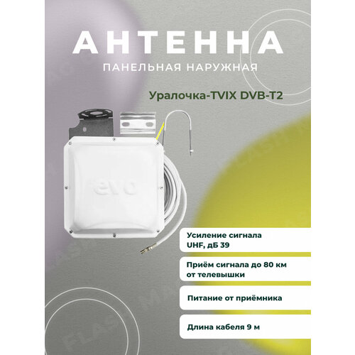 Антенна панельная наружная для цифрового ТВ Уралочка 9м + USB инжектор