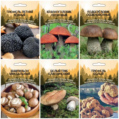 Грибы набор Лукошко, 6 пакетов, зерновой мицелий 30 мл + подробные инструкции
