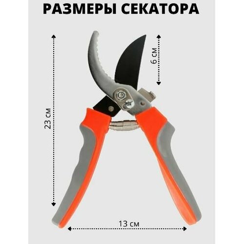 Секатор садовый 23 см, цельнометаллический плоскостной, из углеродистой стали с хромированным покрытием, оранжевый