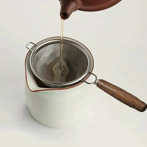 Ситечко для заваривания кофе, чая, фильтр для заварки в кружке, с деревянной ручкой, серебряный