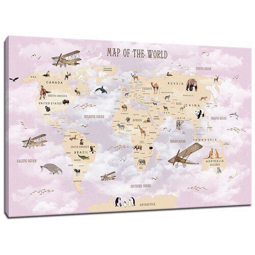 Картина Уютная стена "Карта мира на фоне облаков" 100х60 см