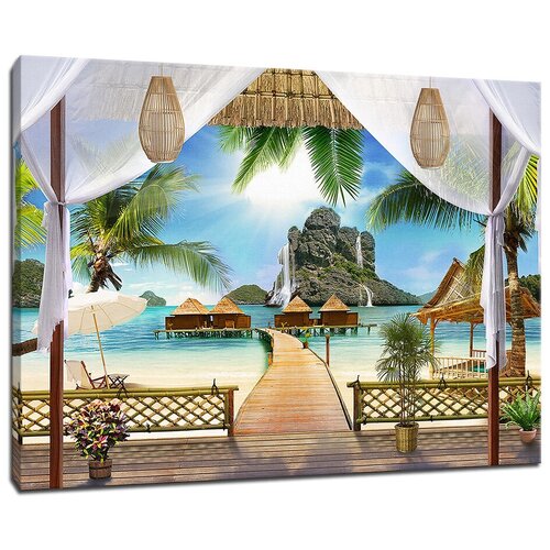 Картина Уютная стена "Вид из бунгало на пляж Таиланда" 90х60 см