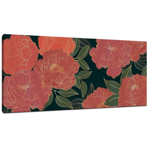 Картина Уютная стена "Золотые пионы в восточном стиле" 140х60 см