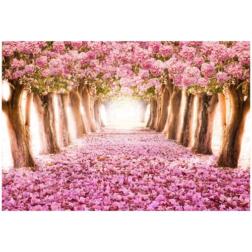 Фотообои Уютная стена "Аллея с цветущими деревьями сакуры" 390х270 см Бесшовные Премиум (единым полотном)