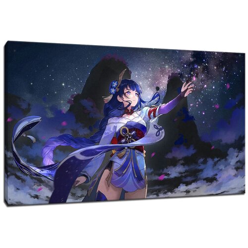 Картина Уютная стена "Райден на фоне звездного неба - Геншин Импакт" 110х60 см