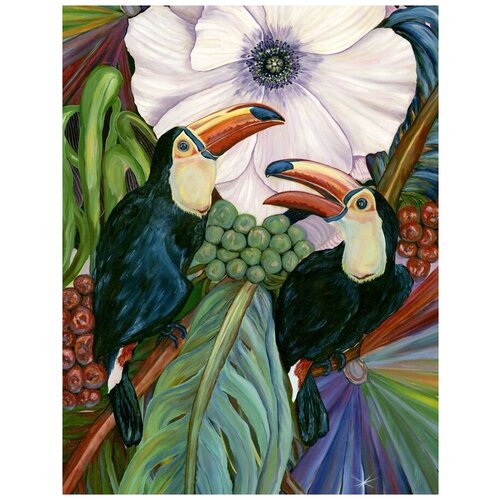 Фотообои Уютная стена "Пара туканов" 210х270 см Бесшовные Премиум (единым полотном)
