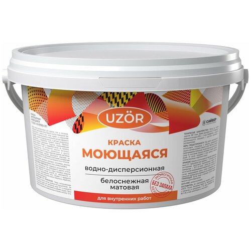Краска водно-дисперсионная Uzor для внутренних работ моющаяся матовая белоснежный 3 кг