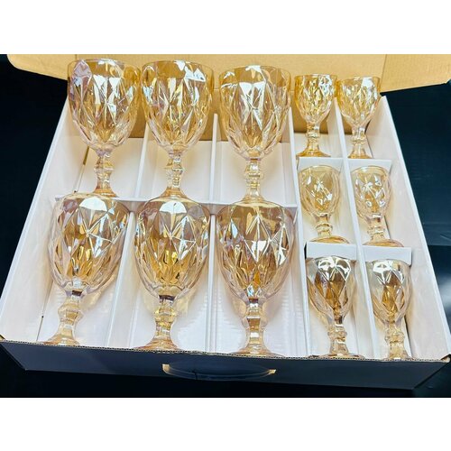 Набор бокалов и рюмок Посуда Мира из цветного стекла, 300 мл, 50 мл, 6+6 шт, Кубок, цвет золотой