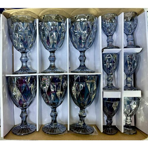 Набор бокалов и рюмок Посуда Мира из цветного стекла, 300 мл, 50 мл, 6+6 шт, Кубок, цвет Синий
