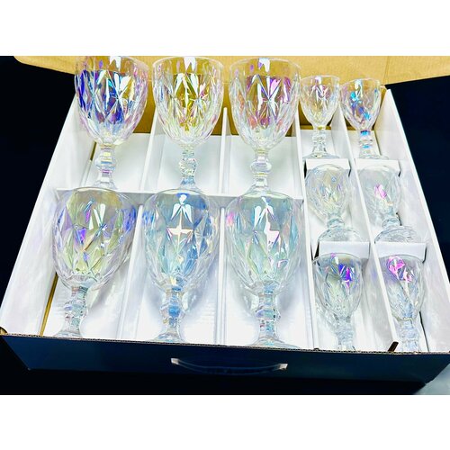 Набор бокалов и рюмок Посуда Мира из цветного стекла, 300 мл, 50 мл, 6+6 шт, Кубок, цвет хамелеон