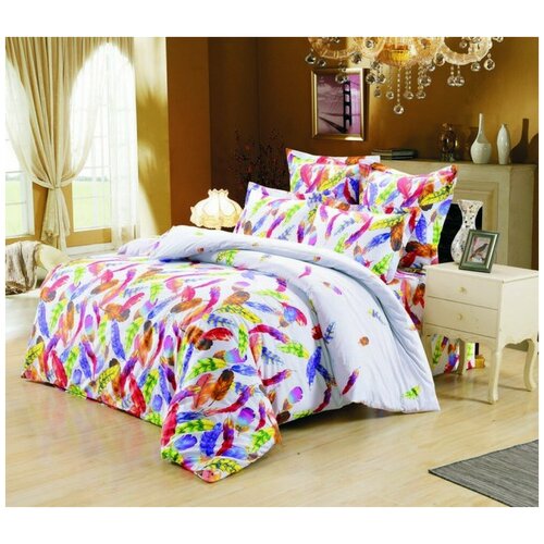 1.5 спальный комплект постельного белья сатин белый с яркими перьями
