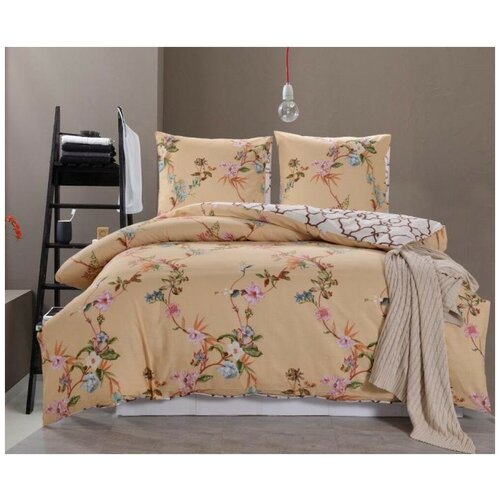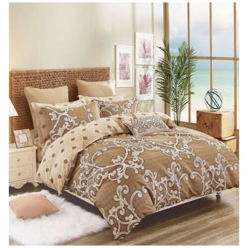 1.5 спальный комплект постельного белья сатин двусторонний светло коричневый с орнаментом