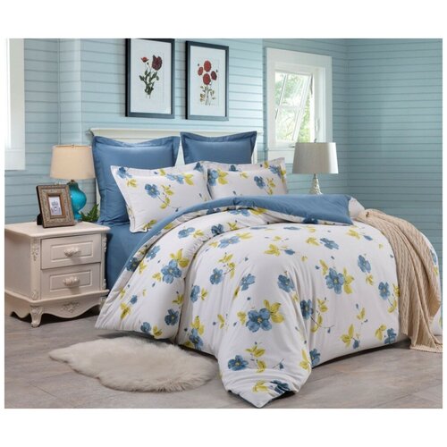 1.5 спальный комплект постельного белья сатин двусторонний белый с веселыми цветами