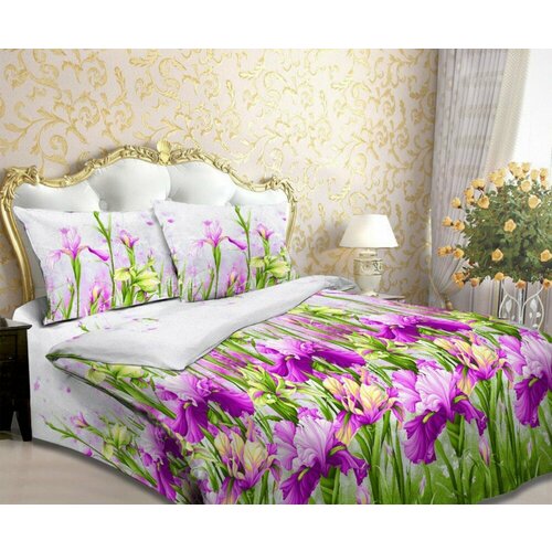Евро постельное белье однотонное из сатина сиреневое с фиолетовым