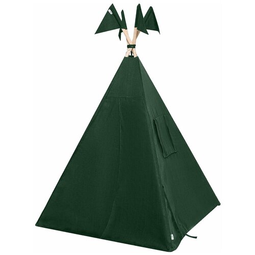 Вигвам 110x110 из зеленого льна с окном, карманом и флажками