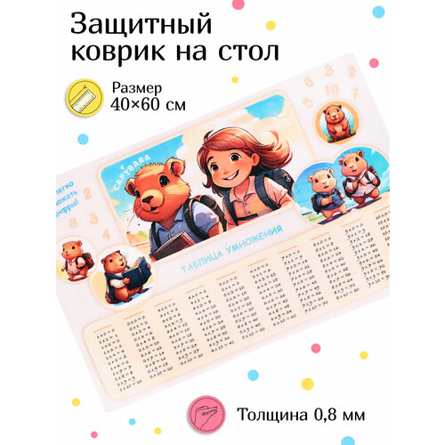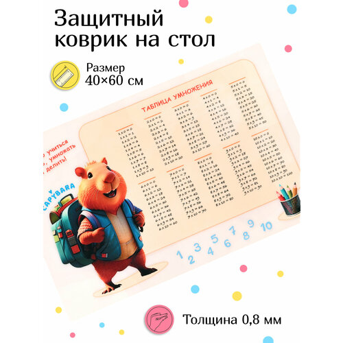 Коврик защитный на стол "Капибара таблица умножения " 40*60см