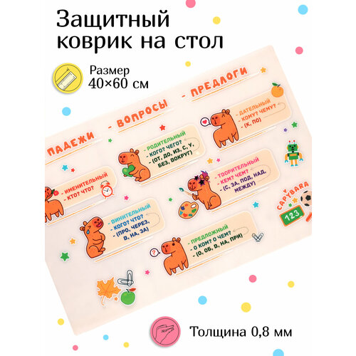 Коврик защитный на стол "Капибара Падежи " 40*60см