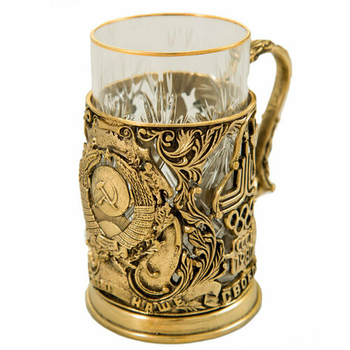 Подстаканник латунный «СССР» со стаканом. Художественное литье