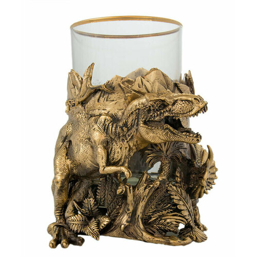 Подстаканник латунный "Динозавры" со стаканом. Художественное литье