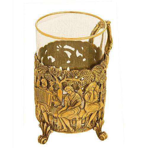 Подстаканник латунный "Посиделки" со стаканом. Художественное литье