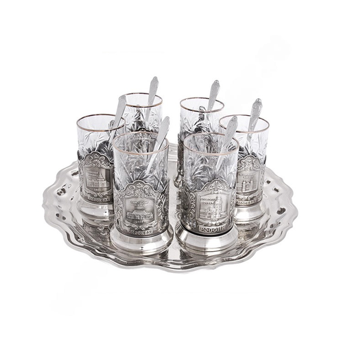 Подстаканник с позолотой "Глухарь" со стаканом и ложкой