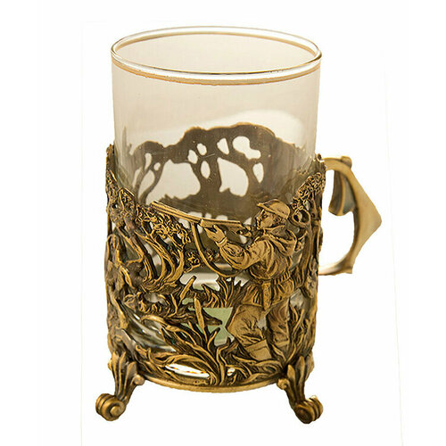 Подстаканник латунный "Охотничий" со стаканом. Художественное литье