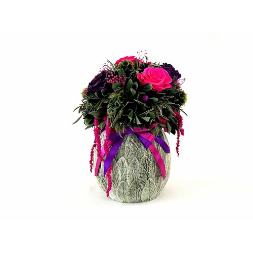 Композиция в керамическом кашпо | Стабилизированные цветы