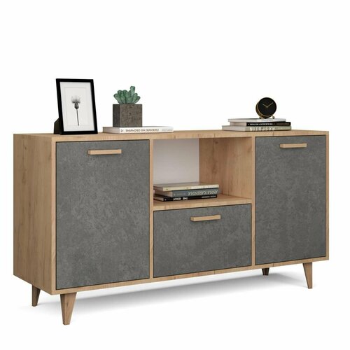 Тумба под телевизор на ножках, бежевая, дерево, серая, камень