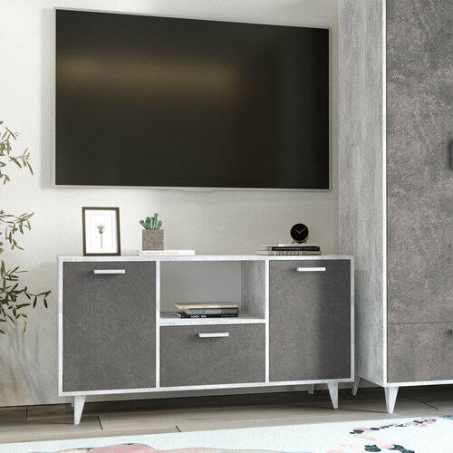 Тумба под телевизор на ножках, тв, белая, серая, камень