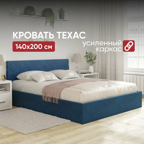 Кровать 140х200 с подъемным механизмом двуспальная Техас с ортопедическим основанием и ящиком для белья, велюр