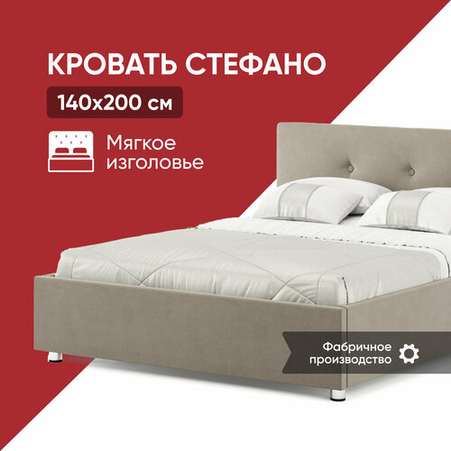Кровать 140х200 с подъемным механизмом двуспальная Стефано с ортопедическим основанием и ящиком для белья, мягкое изголовье, для спальни и дома, велюр