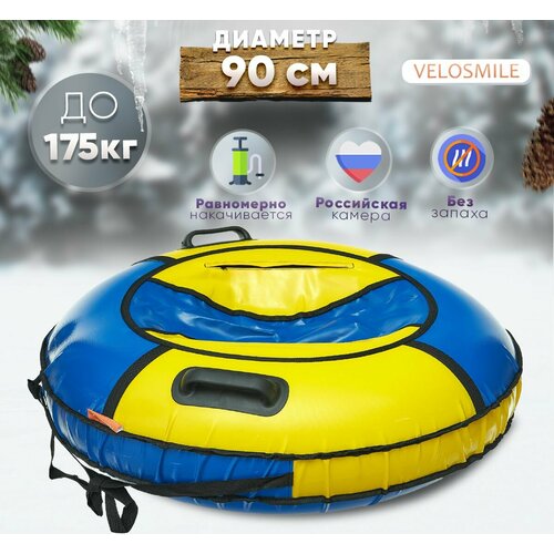 Ватрушка-Тюбинг VeloSmile "Зима-Лето" 90 см, 2 ручки, сине-желтый ПВХ (с молнией и российской камерой)