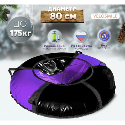 Ватрушка-Тюбинг для катания зимняя VeloSmile "Лед" 80 см ПВХ, сиренево-черный (с молнией и российской камерой)