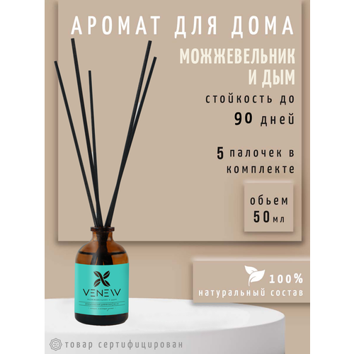 Ароматический диффузор VENEW "Можжевельник и дым" / Аромат для дома, 50 мл