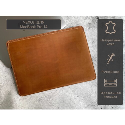 Кожаный Чехол для MacBook Pro 14 Ручная работа Светло-коричневый