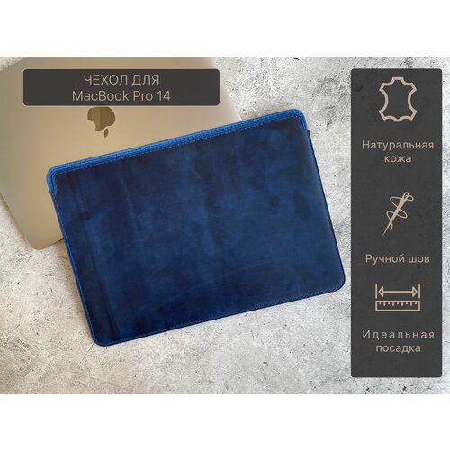 Кожаный Чехол для MacBook Pro 14 Ручная работа Синий