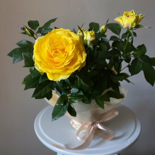 Роза пышная, цветущая в горшке и авторской упаковке. Размер S