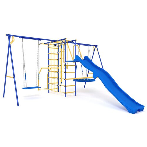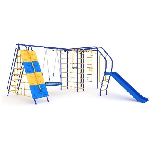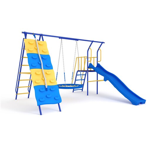 Уличный спортивный комплекс VERESK "Модель № 9 со скалодромом, качелями-гнездо, Доп. модулем "Горка" и Доп. модулем "Паутина".