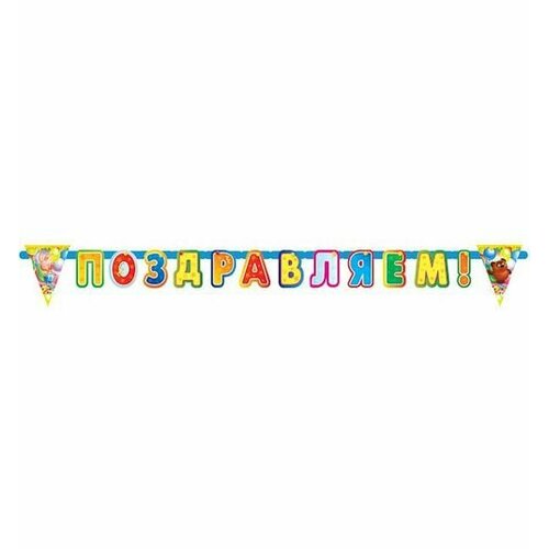 Гирлянда Веселый праздник Поздравляем, Дизайн Винни Пух 2м в пак,176157