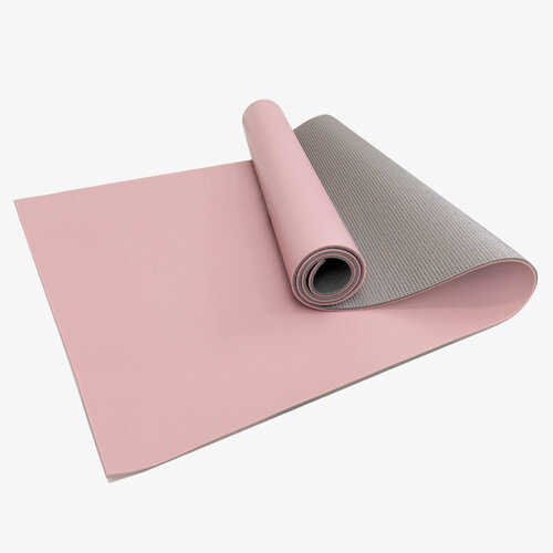 Коврик для спорта VILINA спортивный коврик для йоги и фитнеса, растяжки, гимнастики "Энергия" 61х183 см\коврик для занятий спортом двухслойный пыльно-розовый\cерый