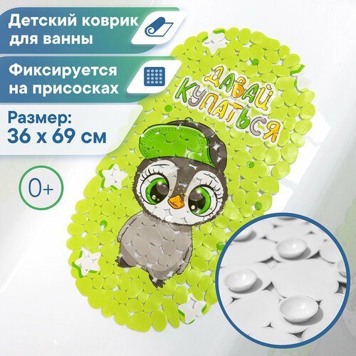 Детский коврик для ванны на присосках противоскользящий "весёлое купание" 36х69 см.