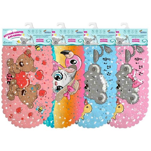 Коврик для ванны вилина Веселое купание 36х69см, детский, с присосками, в ассортименте