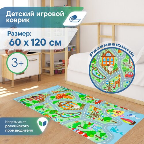 Коврик напольный детский игровой VILINA противоскользящий из вспененного ПВХ 60х120 см. Город животных
