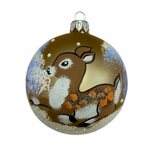 Ёлочный шар 80 мм "Олень на снегу" (Винтажный шар)