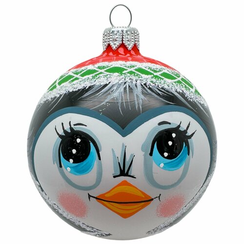 Ёлочный шар 80 мм "Пингвин в шапочке" (Винтажный шар)