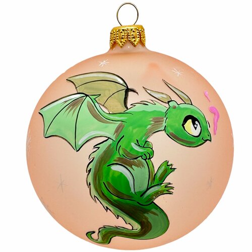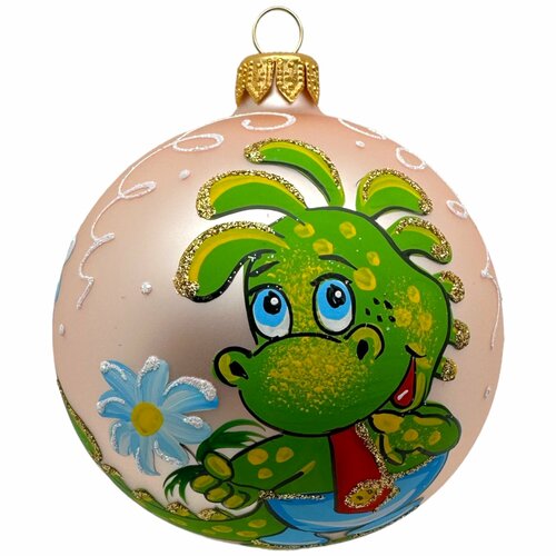 Ёлочный шар 80 мм "Дракон с цветочком" (Винтажный шар)