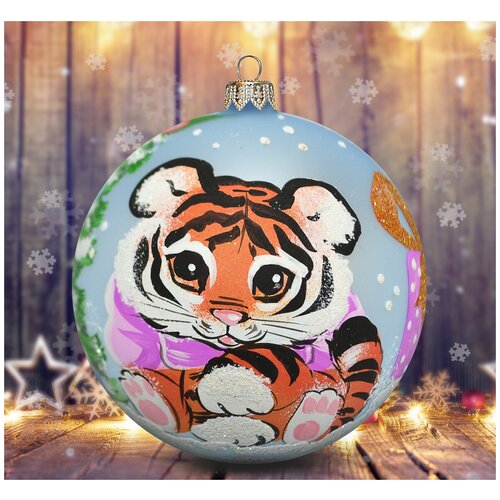 Елочная игрушка "Под еловой веткой" 100 мм Символ Года Винтажный шар Новый Год