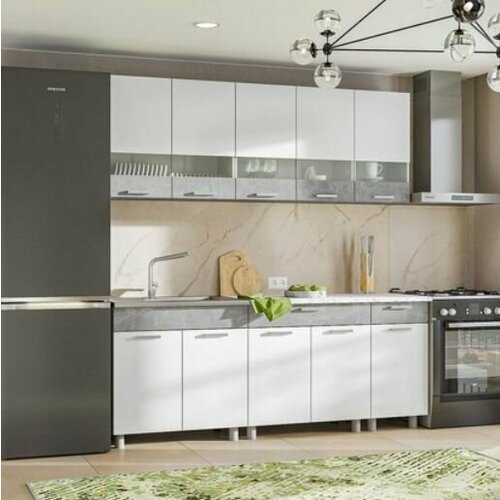 Кухня Денвер 2,0, ЛДСП, белый/ателье светлое, 200x216x60 см.