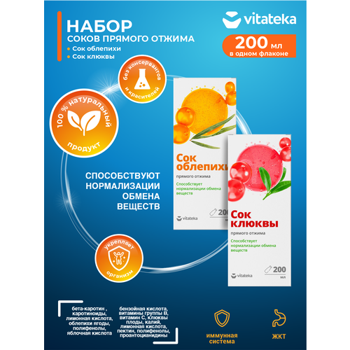 Набор Соков прямого отжима Vitateka Сок облепихи 200 мл. + Сок клюквы 200 мл.