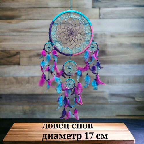 Ловец снов 17 см / Ловушка снов ручной работы , Индонезия (фиолетово-розовый)